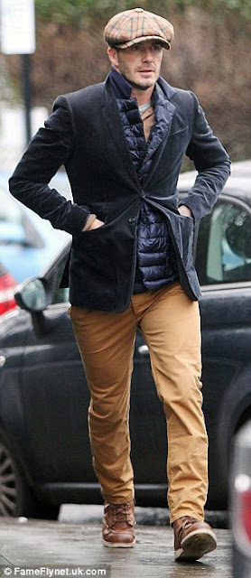 Achana na dhahama iliyomkuta bado Becks alionekana so stylish as usual. Juu alitupia kofia almaarufu baker boy flat cap, viatu vya brown akimechisha na t-shirt yake cheki his narvy valvet jacket.